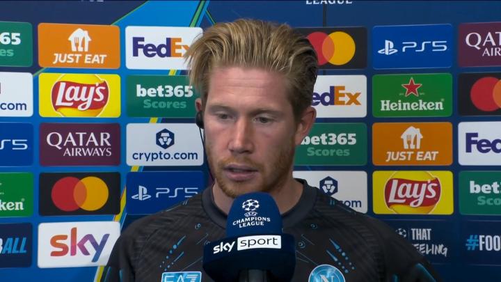 在欧冠联赛阶段第2轮主场以2-1力克葡萄牙体育后,那不勒斯中场核心德布劳内接受了意大利天空体育的专访。
